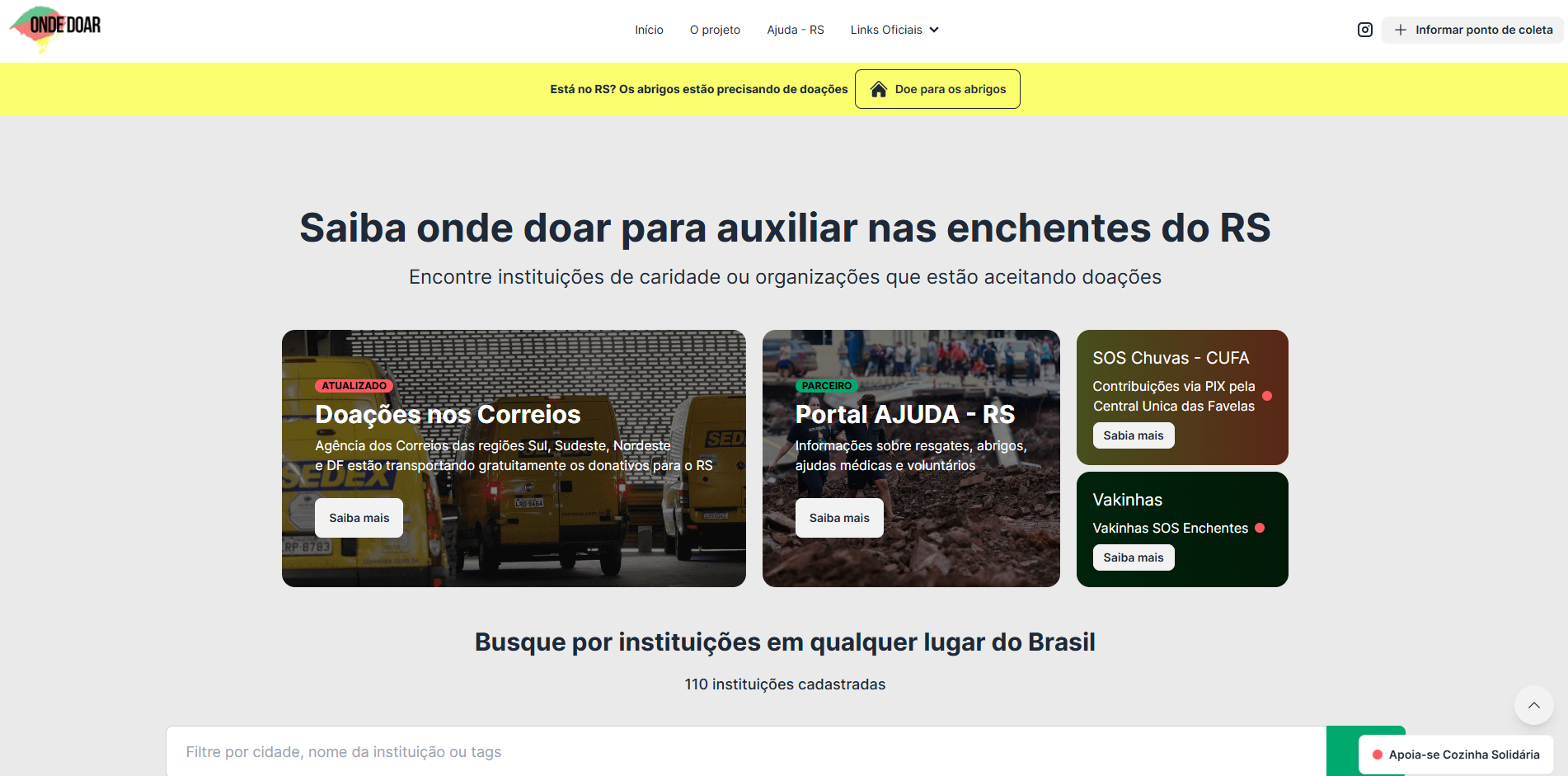 Sistema para reunir informações de pontos de coleta de doações para o RS.